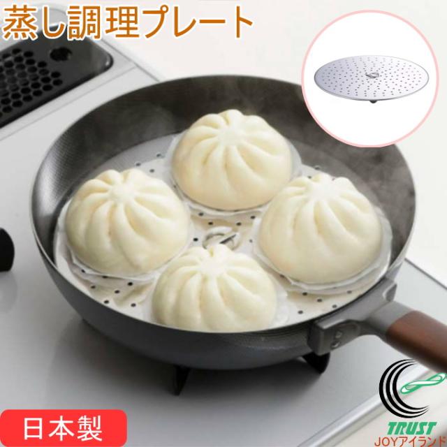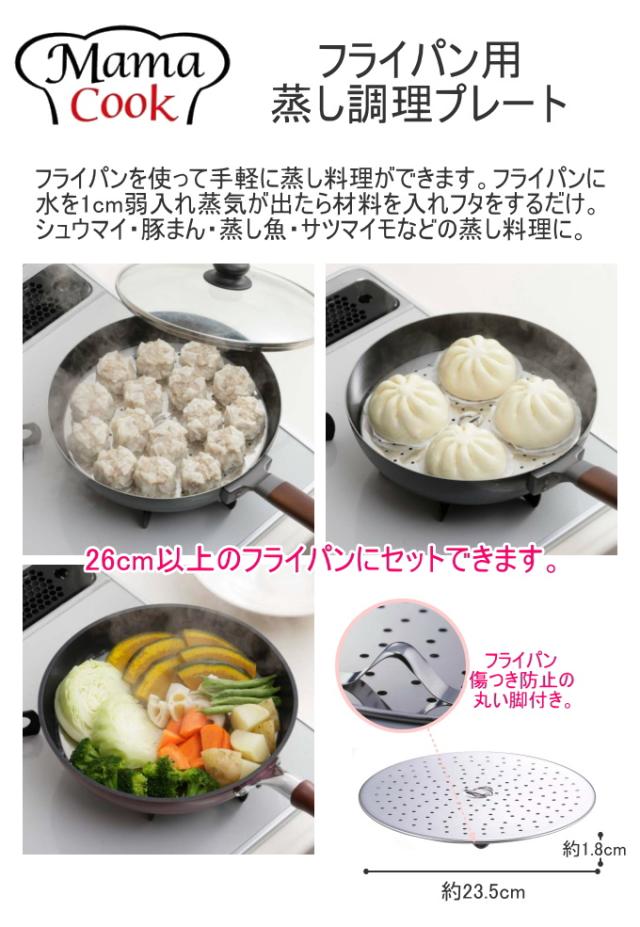 ママクック フライパン用蒸し調理プレート 44012 日本製 燕三条 18-8ステンレス ステンレス製 蒸す 蒸し料理 蒸し皿 プレート フライパン シュウマイ 肉まん ヘルシー 便利 キッチン キッチン用品 調理器具 下村企販