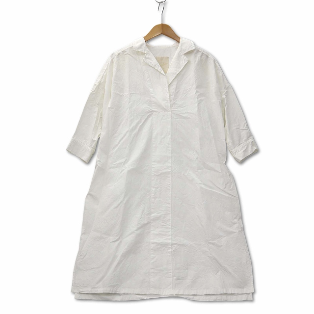 【中古】ミューカ MJUKA 麻混 テーラード プルオーバー シャツチュニック 7分袖 白 F レディース
