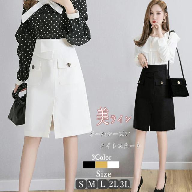 スカート タイトスカート Aライン ハイウエスト ひざ丈 ミディアム 膝丈 ロング丈 美脚 オフィス OL 二次会 デート カジュアル ボトムス S M L 2L