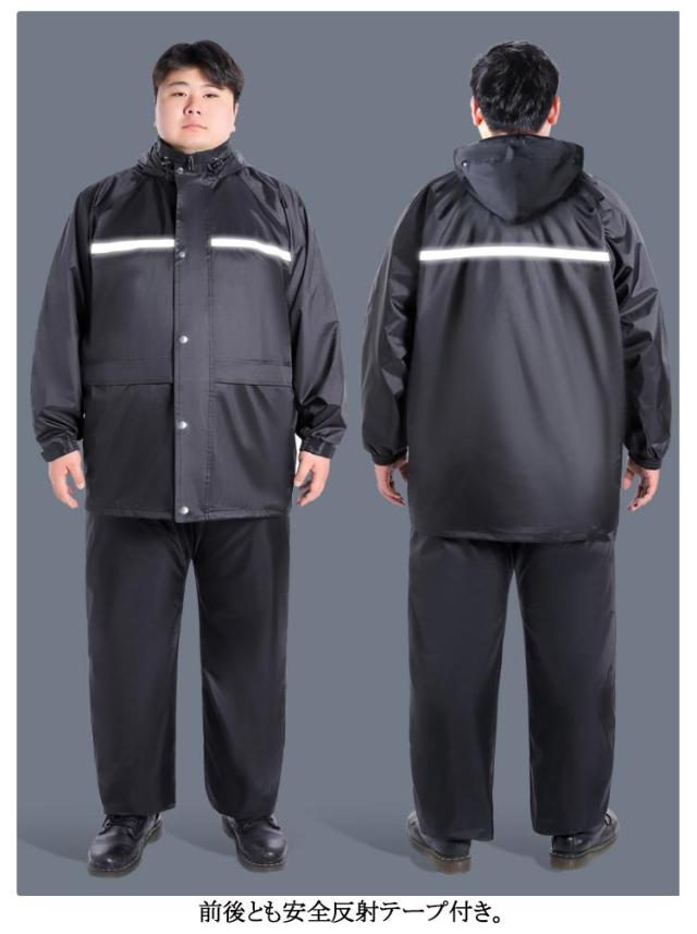 二重透明バイザー付き ビッグサイズ メンズ レインウェア レディース アウトドア 大きいサイズ バイク レインスーツ 作業着 レインコート 2点セット 上下セット 長袖 反射テープ付き ジャケット 防水 防災 自転車 ビッグサイズ 通学 通勤 豪雨 梅雨 メッシュ裏地 カッパ