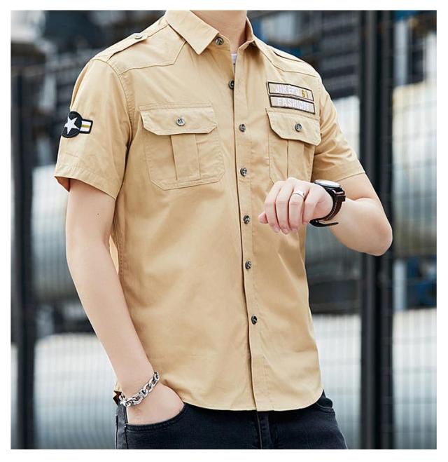 カジュアルシャツ メンズ 半袖 ワークシャツ シャツジャケット ミリタリーシャツ アーミーシャツ ショートスリーブ アメカジ コットンシャツ シャツ ファティーグカーキシャツ 胸ポケット付き ミリシャツ トップス ミリタリーシャツ 無地 春服 夏 夏服