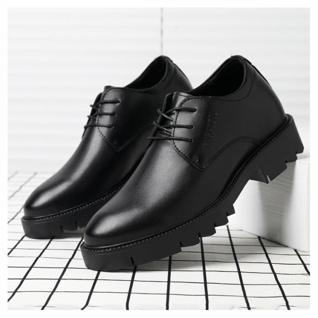 紐靴 メンズ 背が高くなる 6/8/10cmアップ シークレットシューズ ビジネスシューズ メンズ靴 ショートブーツ シューズ 身長アップ 靴 結婚式 フォーマル シークレットシューズ 革靴 外羽根 歩きやすい 防滑 滑りにくい ビジネス レースアップ 黒