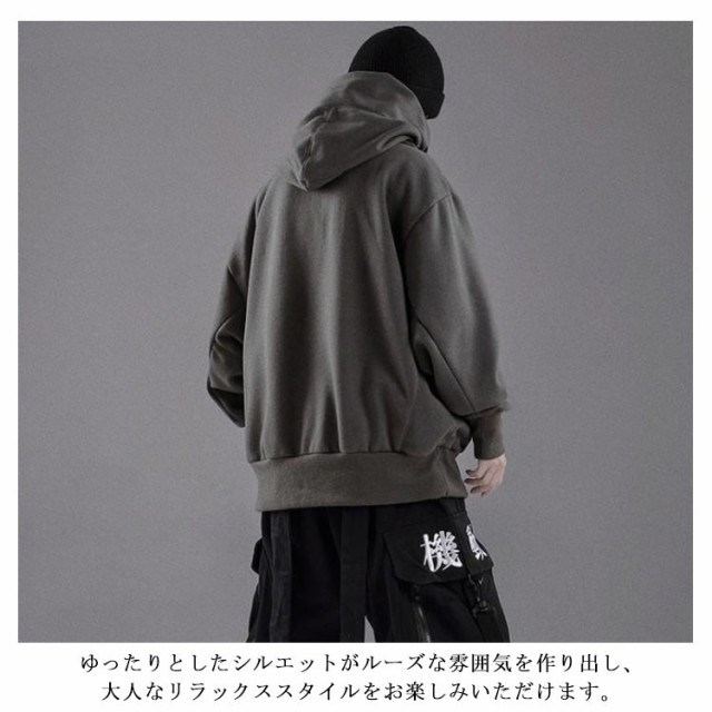 パーカー メンズ ロングTシャツ メンズ ロングパーカー ロング丈 オーバーサイズ カットソー ブラック 黒 個性的 V系 ビジュアル系 ストリート系 モード系 ファッション 送料無料