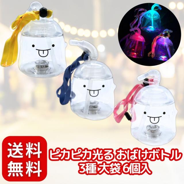 ピカピカ光るおばけボトル 3種大袋6個入 セット 景品〔 お祭り/イベント/子供会/露店/縁日 〕紐付き 持ち歩きOK