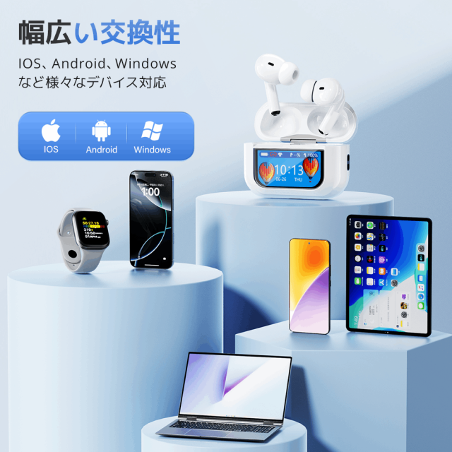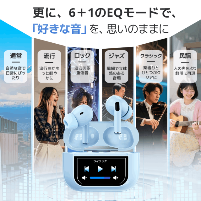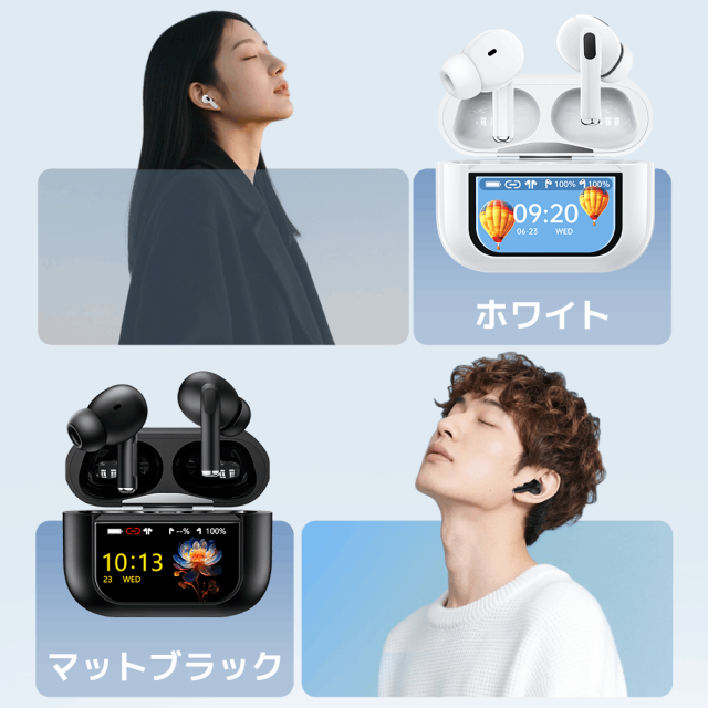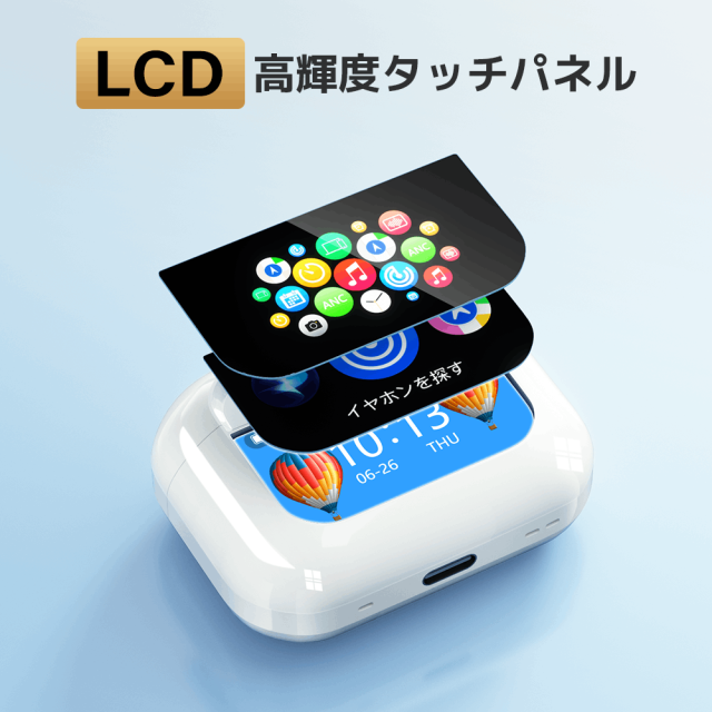 【壁紙自由設定】最新液晶付きワイヤレスイヤホン ワイヤレスイヤホン イヤホン Bluetooth6.0 ノイズキャンセリング TWS カナル型 イヤホン マイク内蔵 カラースクリーン LCDタッチディスプレイ 自動ペアリング ENC通話 高音質 軽量