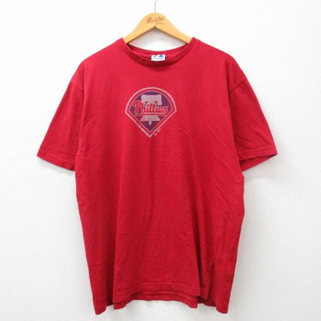【商品名】 XL★古着 マジェスティック 半袖 ビンテージ Tシャツ メンズ 00年代 00s MLB フィラデルフィアフィリーズ コットン クルーネック 赤 メジャーリーグ ベースボール 野球