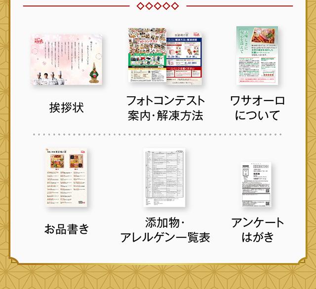 (お品書き、添加物・アレルゲン一覧表、解凍方法付き)