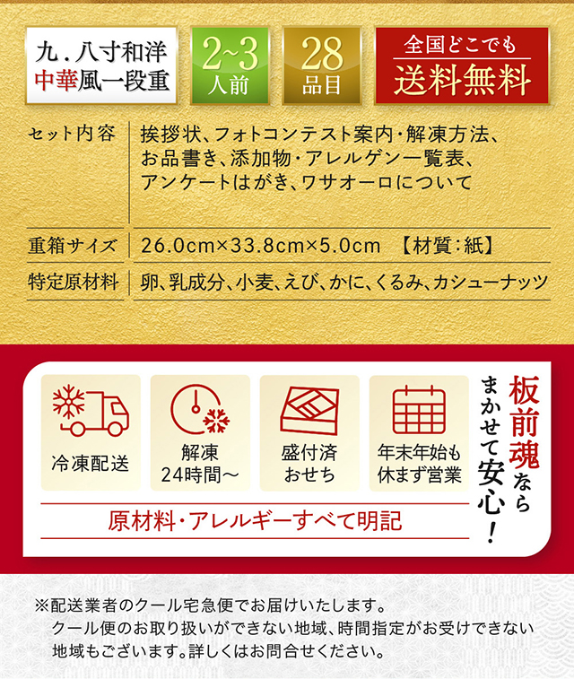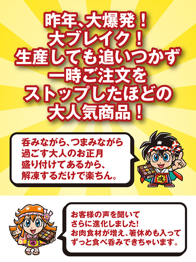 【本日限定!ポイント5倍+最大2,000円OFFクーポン】新登場! おせち 完売間近 予約 おせち料理 新商品 板前魂のおつまみおせち 2個セット 和洋中華風超特大9.8寸一段重 中華風 2〜3人前 2人前 3人前 28品目 人気 冷凍 肉 2025 2026 送料無料