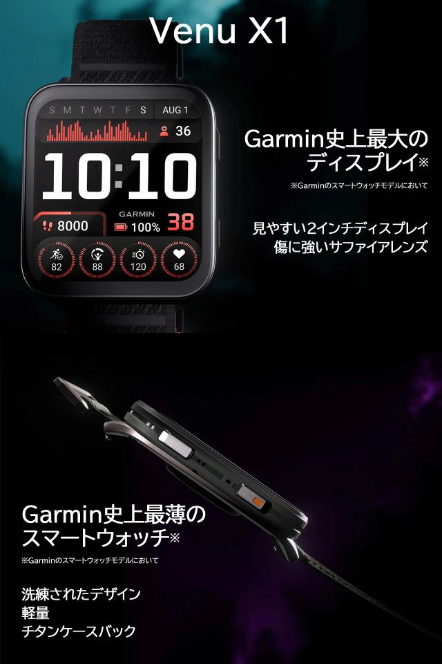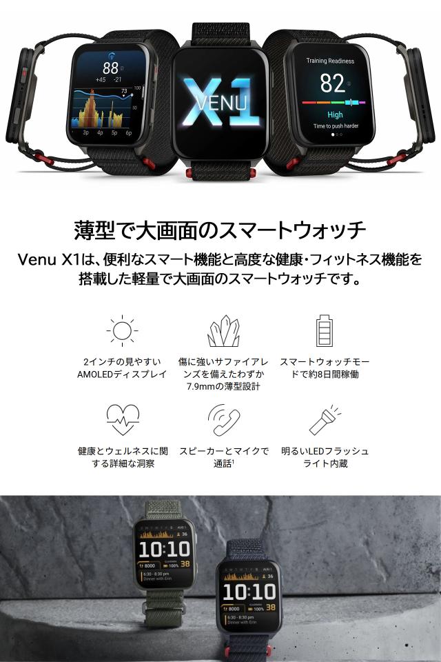 スマートウォッチ ガーミン GARMIN Venu X1 選べる2色 フィットネスGPS 腕時計 大画面 軽量チタン 薄型 Suica対応 通知機能 通話発信・応答 音楽保存再生 血中酸素 スポーツ ダイエット 健康 ランニング ジョギング 筋トレ ゴルフ 【dgpcp】