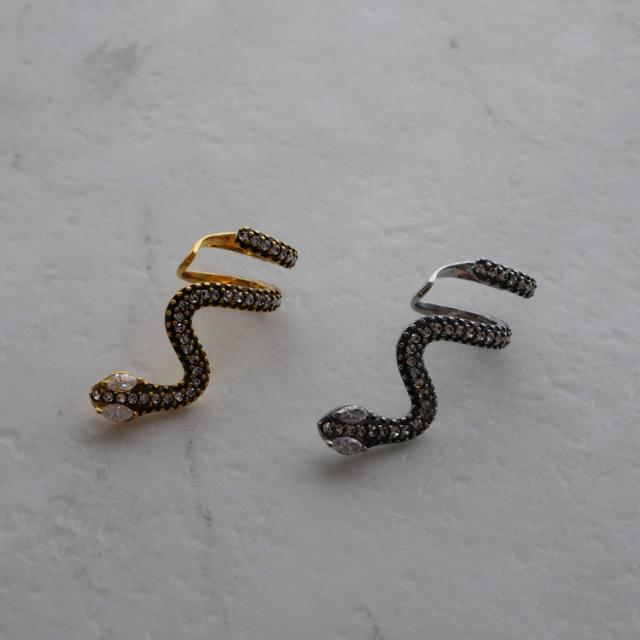 目も体にも敷き詰められたジュエルが美しい蛇アクセ好きにはたまらないイヤーカフ。