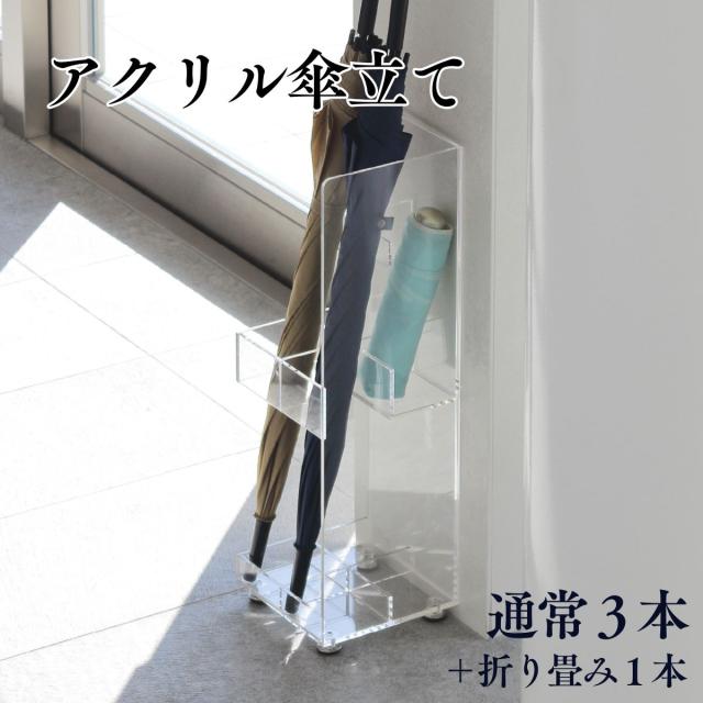 アクリル傘立て 透明 おしゃれ コンパクト スリム 傘スタンド 北欧風 シンプル 玄関収納 雨傘 長傘対応 省スペース クリア 傘収納