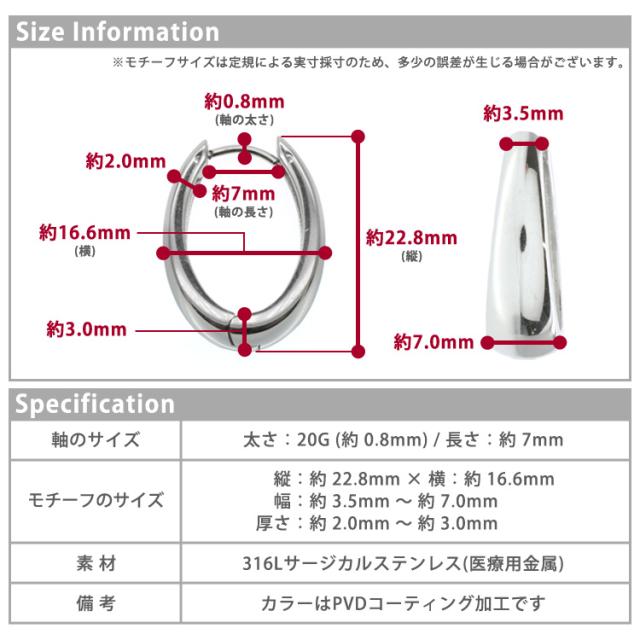 ピアス 金属アレルギー対応 ステンレスピアスステンレスピアス オーバルデザインフープピアス 両耳用 316L