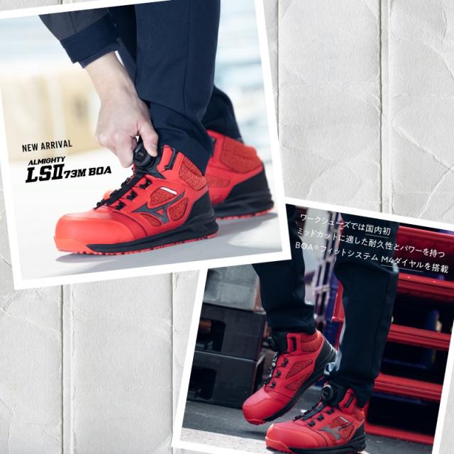 3E相当 ミズノ メンズ オールマイティ LS II 73M BOA ミドルカット ワークシューズ 安全靴 ボア ダイヤル式 おしゃれ JSAA規格 反射材 メッシュ 軽量 送料無料 Mizuno F1GA2203