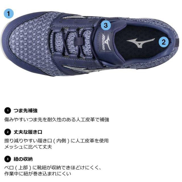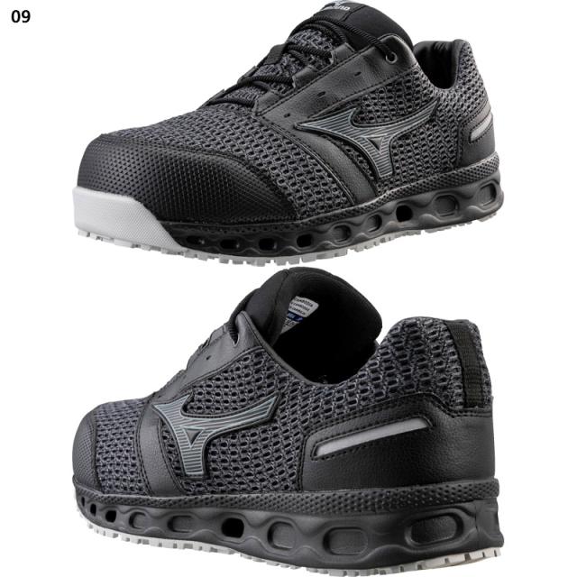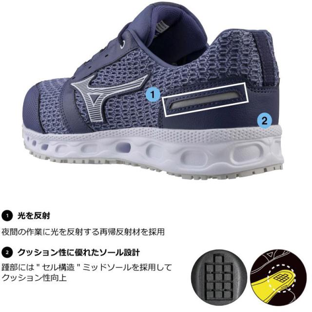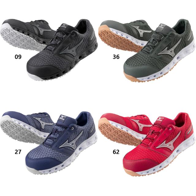 3E相当 幅広 ワイド ミズノ メンズ レディース オールマイティVH11L スニーカー 靴 シューズ 安全靴 通気 反射材 メッシュ ブラック 黒 ブルー レッド 青 赤 カーキ 送料無料 Mizuno F1GA2204