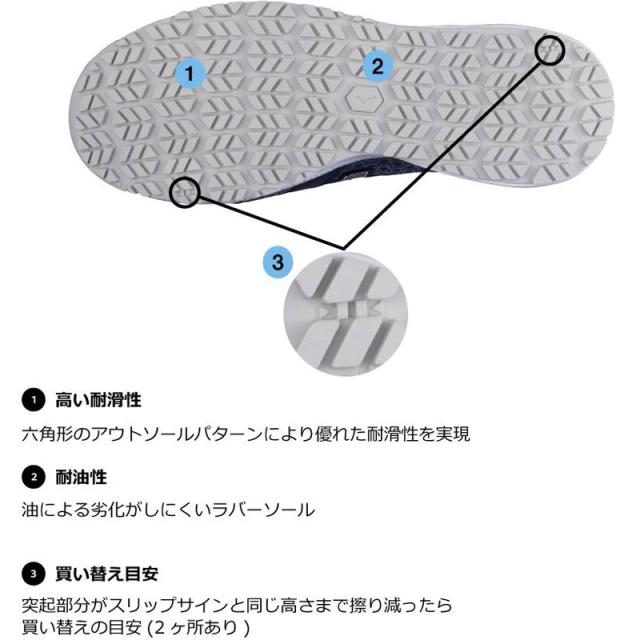 独自のソール構造とアッパーの大胆なメッシュによる、通気に特化したワークシューズ