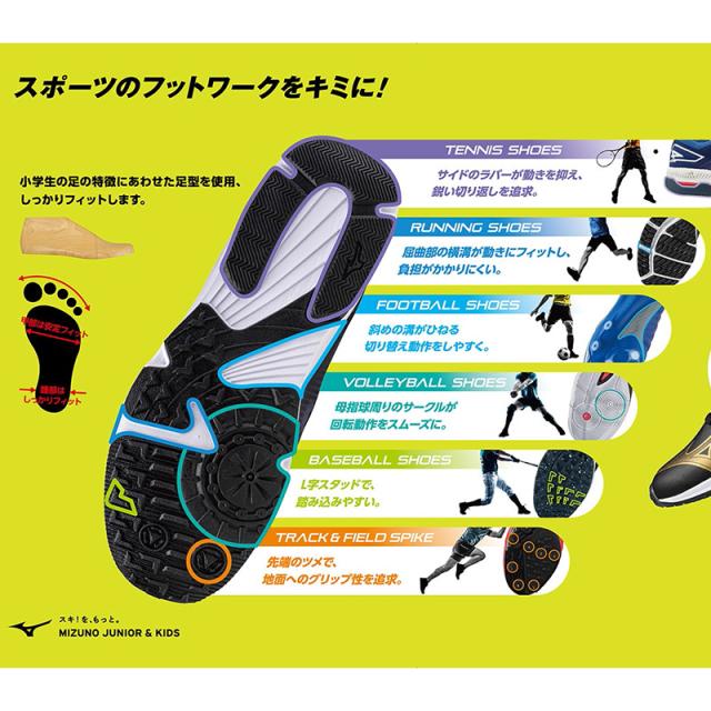 ミズノ ジュニア キッズ スピードスタッズ4 SPEED STUDS 男の子 女の子 靴 シューズ スニーカー ランニング 部活 普段履き 軽量 紐 ブラック 黒 ブルー レッド 青 赤 オレンジ グリーン パープル 送料無料 Mizuno K1GC2425