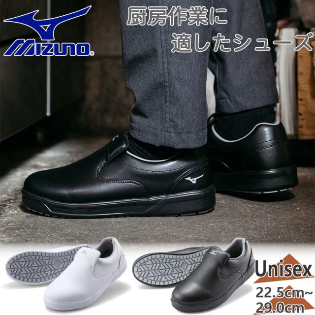 3E相当 幅広 ワイド ミズノ メンズ レディース ソフポン スリッポン 靴 シューズ カジュアル 厨房 コックシューズ ワーキング 作業 仕事 耐油 耐滑 ホワイト 白 ブラック 黒 送料無料 Mizuno F1GC2200