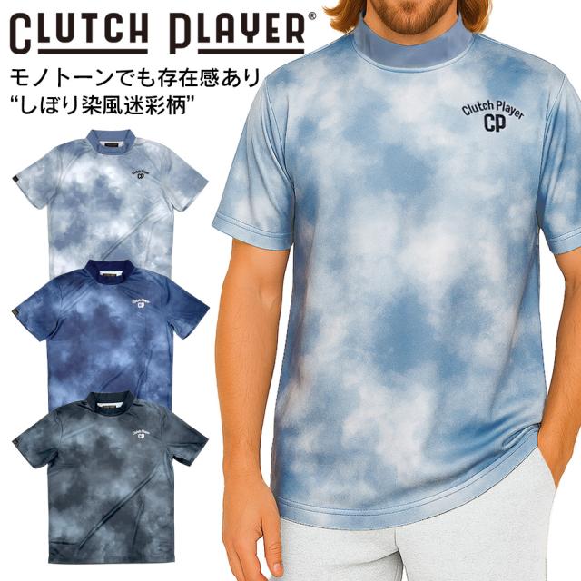 クラッチプレーヤー ゴルフウェア メンズ 夏 モックネック しぼり 絞り 風 迷彩 カモ カモフラージュ カットソー ストレッチ 半袖 ゴルフシャツ コモコーメ
