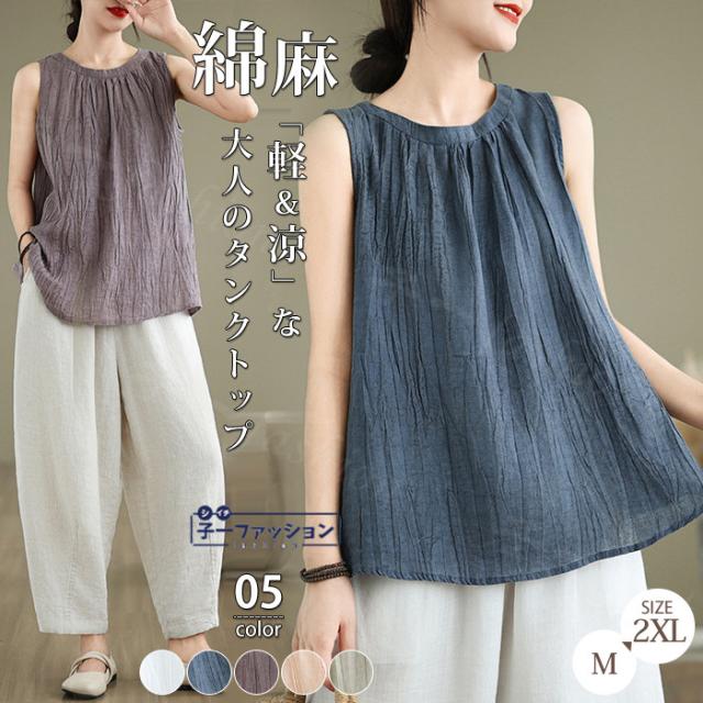 タンクトップ ノースリーブ 袖なし 薄手 シンプル 無地 重ね着 Uネック レディース トップス 綿麻 リネン Tシャツ ゆったり 薄手 重ね着 レイヤード 着痩せ 体型カバー カジュアル おしゃれ 涼しい インナー 夏 秋冬 バレンタイン