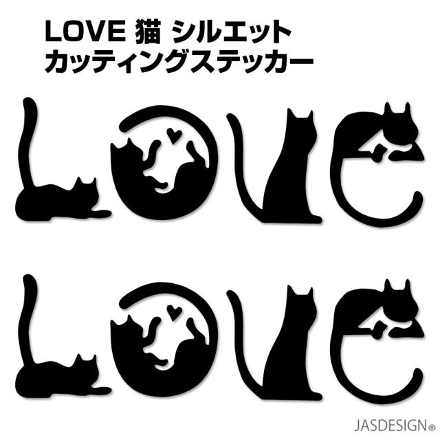 猫 ステッカー 車 ネコ バイク ヘルメット 壁 キャリーケース パソコン スマホ 傷隠し LOVE 文字 シルエット かわいい おもしろ おしゃれ 防水 シール ウォールステッカー デカール らぶ ラブ 2枚セット 送料無料 JM-419