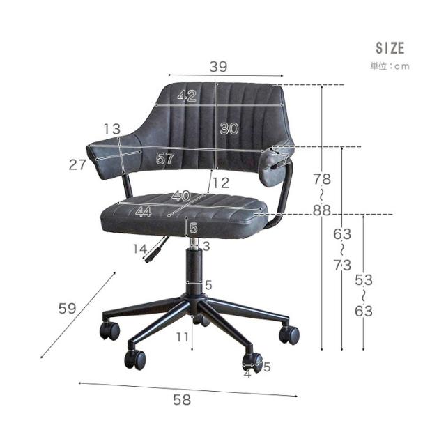 ■サイズ 外寸: 幅58×奥行59×高さ79〜89cm