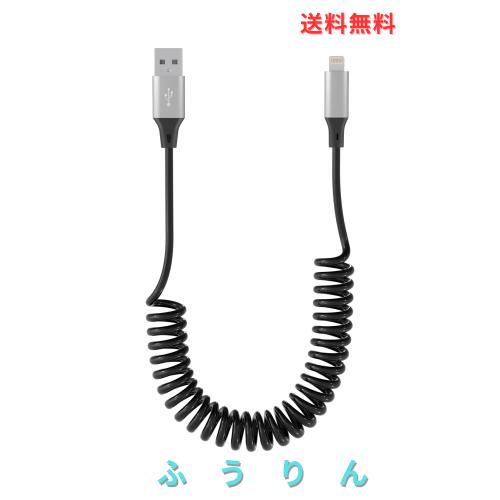 ライトニングケーブル カールコード、MFi認証 apple carplay ケーブル lightning カールコード iphone ケーブル カールコード 2.4A充電