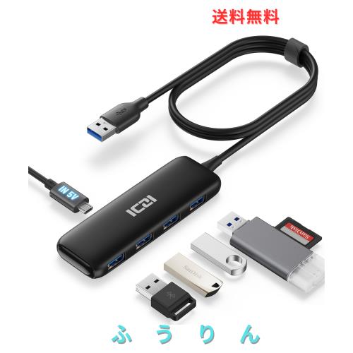 ICZI USB 3.2 Gen1 ハブ 5ポート ,USB ハブ3.0 120cm 延長ケーブル 独特なデザイン Micro USB給電用ポート付き 5Gbps高速転送 セルフパ