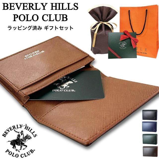 ラッピング済 ギフトセット ビバリーヒルズ ポロクラブ 名刺入れ メンズ 牛床革 高級感 シンプル スリム ブランド カードケース プレゼント 誕生日 記念日 BEVERLY HILLS POLO CLUB 成人 卒業 入学