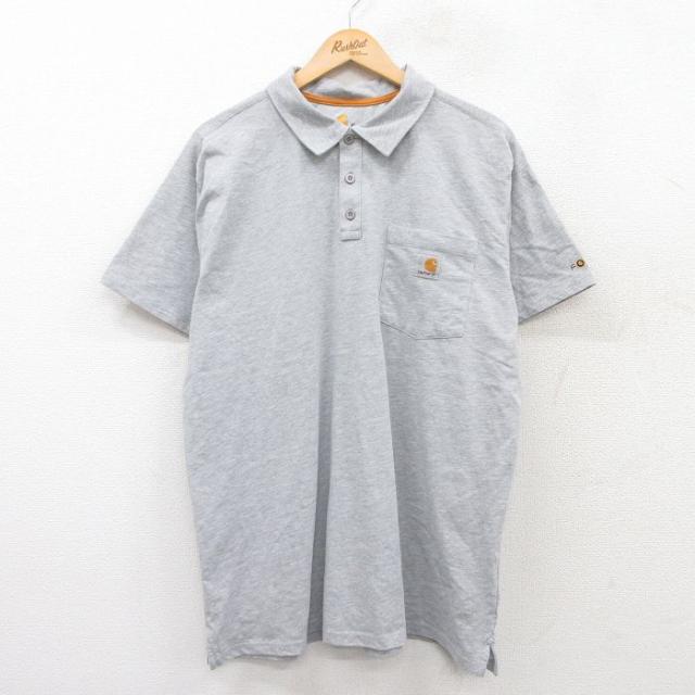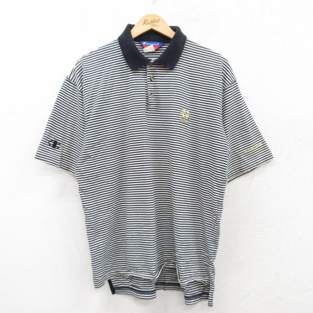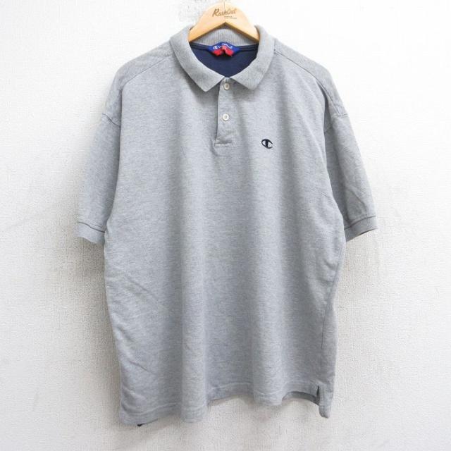 古着 チャンピオン champion 半袖 ブランド ポロ シャツ メンズ ワンポイントロゴ 鹿の子 大きいサイズ グレー 霜降り XLサイ 中古 古着