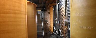 ドメーヌ・クロード・ゲラエールでは、年間で最大6万本ほどのワインを生産しています。プレス機は、2013年から空気圧式に変更しました。中のバルーンが膨らむことで、葡萄を均等にプレスすることが出来ます。「以前まではスクリュータイプのプレス機でしたが、空気圧式の方が高品質な果汁を得ることができます。低い圧力でゆっくりとプレスするほど、果汁の品質は良くなります」とクロードは話します。プレスは1日に2-3回行います。1回につき、4,000kgの葡萄を4時間かけてプレスします。優しく圧搾した果汁はまずタンクに移し、24時間静置することで澱下げを行います。その後、上澄みの綺麗な果汁を発酵用のタンクに移し、1-1.5週間かけてアルコール発酵を行った後、マロラクティック発酵を3週間ほどかけて行います。この工程により、酸が和らぐことでワインの甘みが増します。
