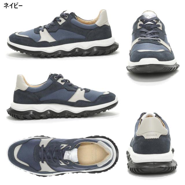 レザーと綿布を組み合わせたカジュアルなデザイン。製品にはスペアシューレース(オフホワイト色)が付属します。重量は26.0cmで片足約375gです。