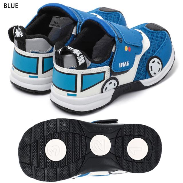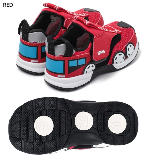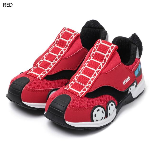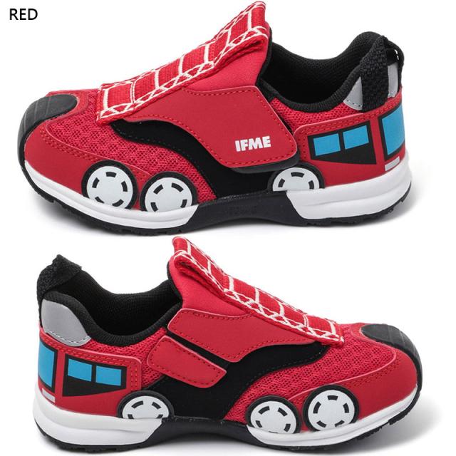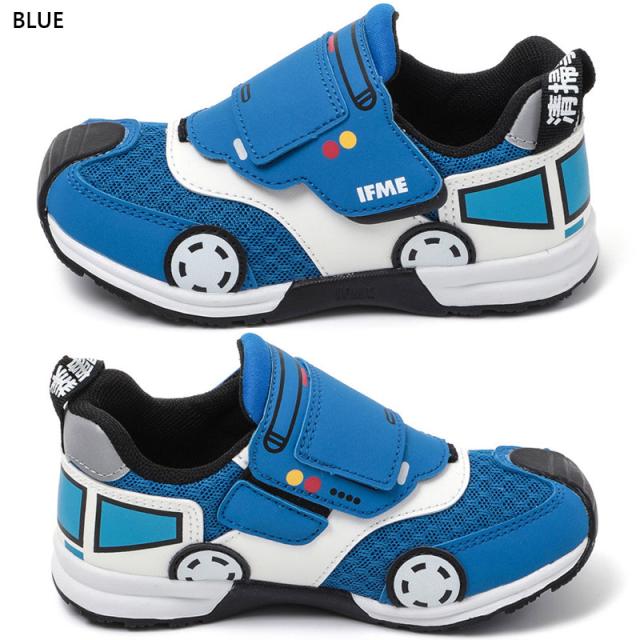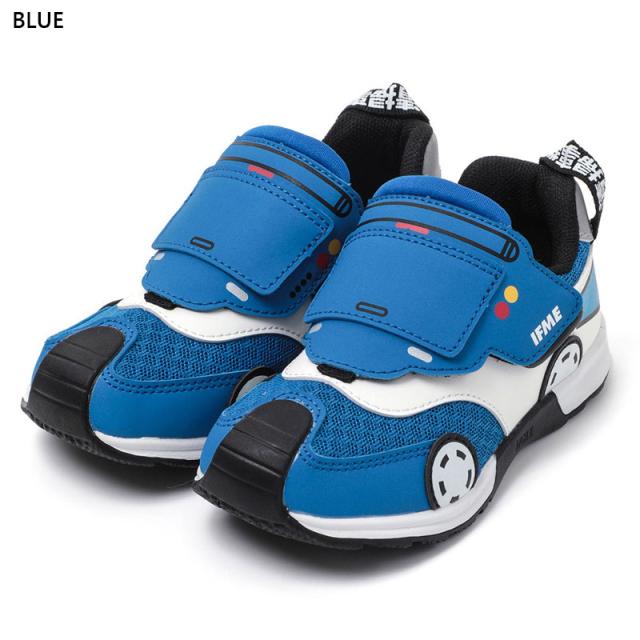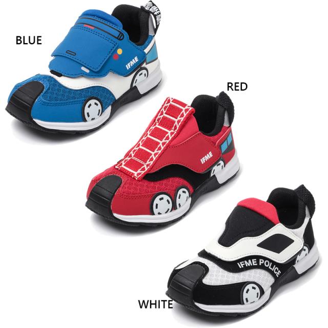 3E相当 幅広 ワイド イフミー ジュニア キッズ 男の子 靴 シューズ スニーカー のりもの 乗り物 マジックテープ ベルクロ ホワイト 白 ブルー レッド 青 赤 送料無料 IFME 30-5809