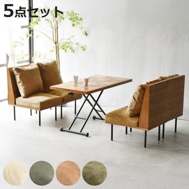 ダイニングテーブルセット 4人掛け 5点セット 昇降式テーブル幅122.5cm 1人掛けソファ×4 infinite ( ソファー 脚 取り外し チェア テーブル 高さ調節 木製 天然木 リビングソファ カバー ダイニングソファ 連結 レイアウト )
