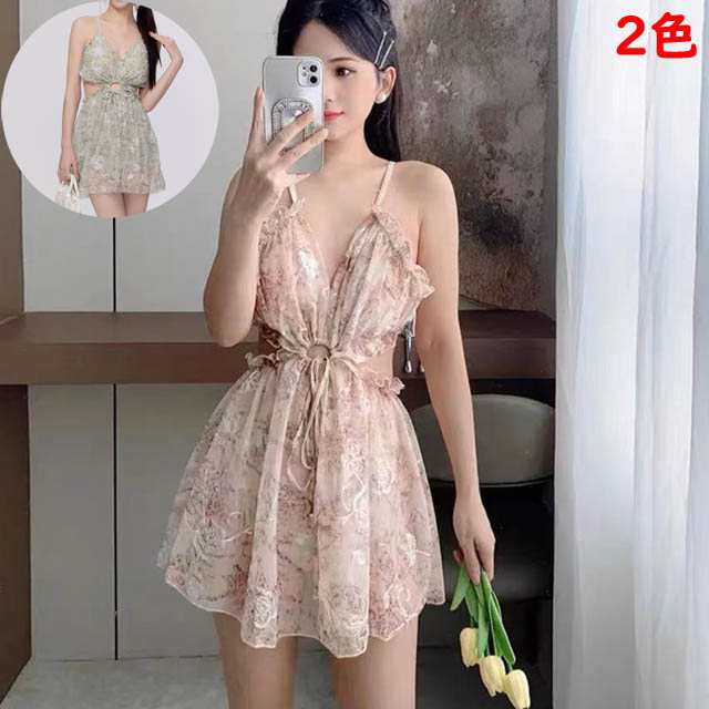 水着 ワンピース水着 体型カバー 可愛い 花柄 オフショル 2色/S-L