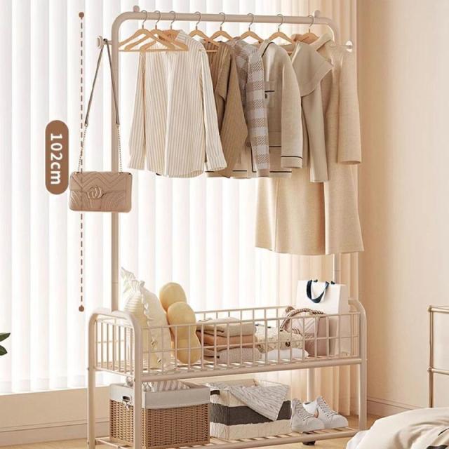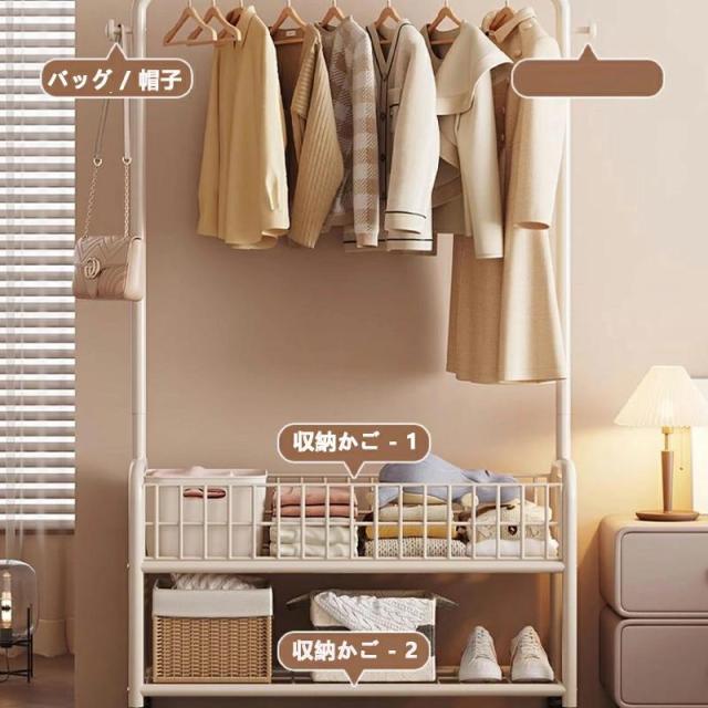 【多機能収納】多機能のハンガーラックはコートや洋服などをかける、帽子やカバンなどをかける、さらには収納ケース、靴、カバン、タオル、布団や小物を置くことも可能です。下部にある棚には靴やスーツケースも置けます。大幅にあなたの狭い部屋にスペースを省けます!