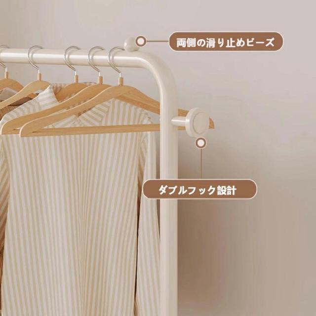 【安定性&キャスター付き】太めのパイプでしっかりと安定しています。ハンガーラック脚部にはボールタイプのキャスターを使用, 小回りが利くため、どんな方向へもスムーズな移動が可能。衣替えやお掃除のときにも移動がラクラク。錆びにくい素材でできているので、洗濯物を干すためにベランダに置いても、梅雨の日に使っても錆びることはない。