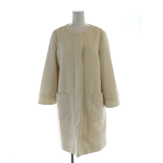 【中古】ロイスクレヨン Lois CRAYON ノーカラーコート ミドル 総レース M アイボリー 14001825 /RO レディース