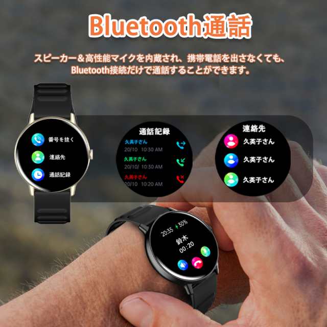 スマートウォッチ 血糖値 血圧測定 丸型 1.43インチ 通話機能付き 血中酸素 心拍数 睡眠検測 体温検知 着信&メッセージ通知 活動量計 歩数計 カロリー消費 走行距離 腕上げ点灯 SOSモード Smart Watch iPhone Android対応 日本語取扱説明書 腕時計 プレゼント