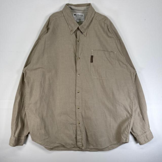 古着 コロンビア Columbia 長袖シャツ チェック 大きいサイズ ワンポイント ロゴ XL ベージュ系 マルチカラー メンズ