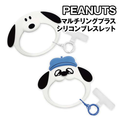 ピーナッツデザインのリングアクセサリとシリコンブレスレットのセットです。