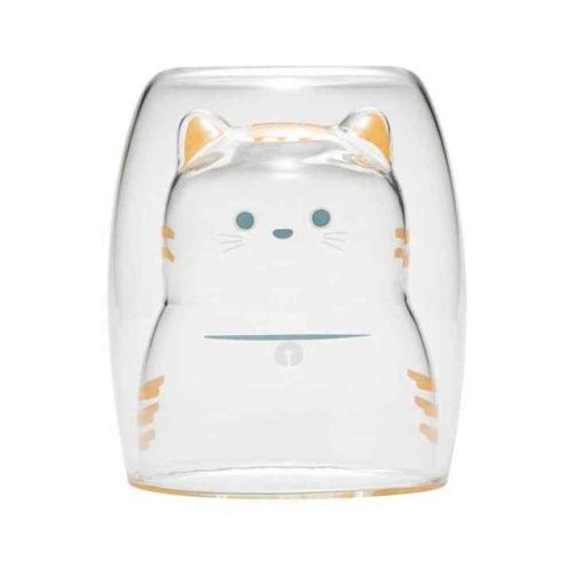 入れる飲み物によって猫の見た目がガラリと変わる飲み物を注いで変化を楽しむ耐熱ネコグラスです。