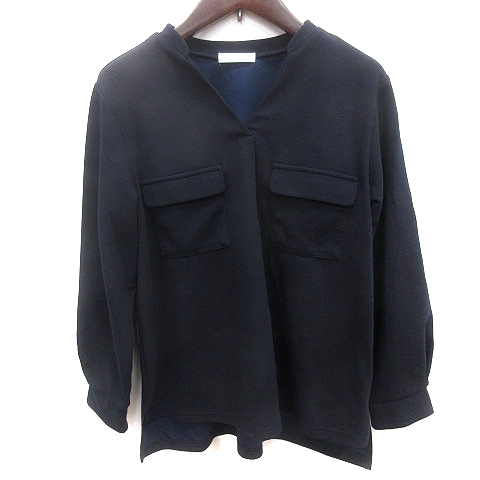 【中古】ドレスキップ DRESKIP シャツ ブラウス オーバークロスVネック 七分袖 M 紺 ネイビー /AU レディース