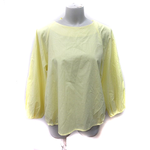 【中古】グローブ grove シャツ ブラウス プルオーバー 長袖 シアー 麻混 リネン混 L 黄色 イエロー /YI レディース