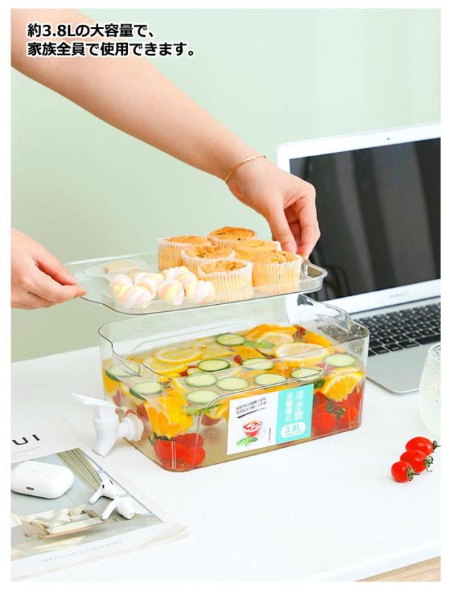 横置き 耐熱 大容量 ジュース 冷水筒 冷水ポット 耐冷 洗いやすい 麦茶ポット お茶ボトル 蛇口付き 3.8L お茶ポット ウォーターボトル 冷蔵庫 ドリンクサーバー 水差し 大麦茶 冷水筒 ドリンク 炭酸 パーティー ホーム 家庭用 積み重ね 省スペース