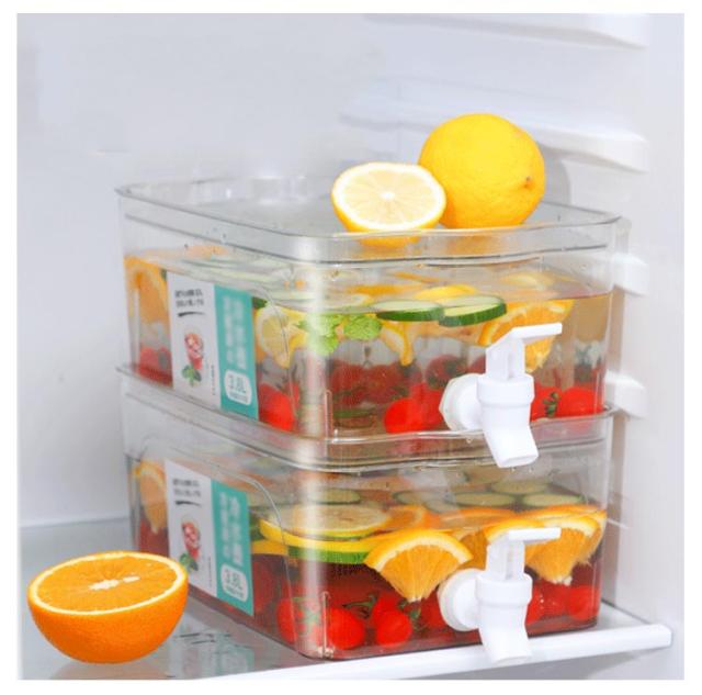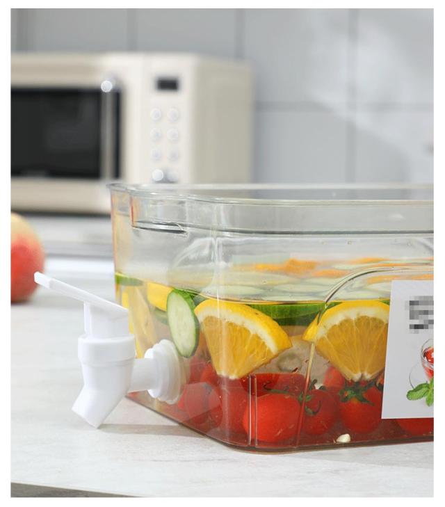 | 蓋の上に物置や積み重ね可能な大容量(3.8L)冷水筒。 蓋が凹んだデザインになっているので、もう一つの冷水筒を重ねたり、フルーツや他の物を置いたりすることができます。 水筒の両側に取っ手がついていて、移動しやすい。 便利なプレス蛇口のデザインで、水の出す量を制御しやすい、使いやすいです。家庭のお年寄りも、子供も簡単に使えます。 約3.8Lの大容量で、家族全員で使用できます。 | |