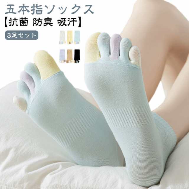 レディース 【3足セット】5本指ソックス カジュアル 靴下 おしゃれ コットン くつした 綿 かわいい 5本指靴下 蒸れない 通気性 女性 クルー丈 【3足セット】5本指ソックス くつ下 五本指ソックス 無地 快適 抗菌 防臭 水虫防止 通年