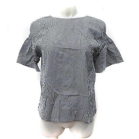 【中古】シップス SHIPS シャツ ブラウス ギンガムチェック 半袖 黒 ブラック /YI レディース