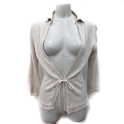 【中古】ヒューマンウーマン HUMAN WOMAN カーディガン ニット 七分袖 麻 リネン 2 M ベージュ /YI レディース