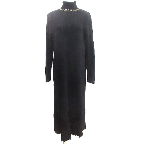 【中古】ジーナシス JEANASIS ニット ワンピース マキシ ロング タートルネック パイピング 長袖 F 黒 ブラック /AU