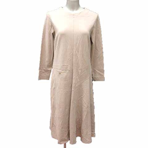 【中古】ドゥクラッセ DoCLASSE ワンピース フレア ひざ丈 長袖 9 M ベージュ /YK レディース